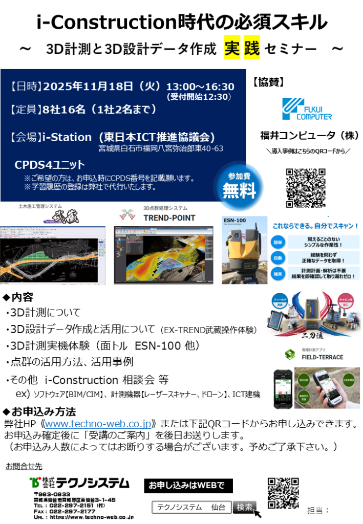i-Construction時代の必須スキル ~3D計測と3D設計データ作成 実践セミナー~